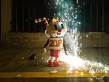- La elaboración, exhibición estática o procesional y culminación con quema del Año viejo, en medio de una fiesta cargada de símbolos, hace parte de las celebraciones de fin de año o Nochevieja.