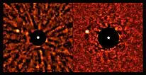 Dos imágenes de AF Lep b tomadas con el instrumento SPHERE del telescopio terrestre VLT (Very Large Telescope).