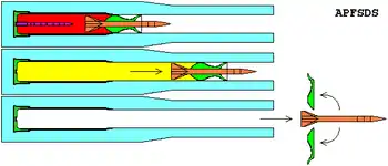 - Esta obra contiene una traducción derivada de «Armour-piercing discarding sabot» de Wikipedia en inglés, publicada por sus editores bajo la Licencia de documentación libre de GNU y la Licencia Creative Commons Atribución-CompartirIgual 4.0 Internacional.