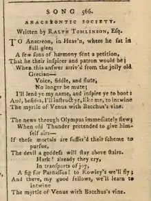 - "Away to the Sons of Anacreon we'll fly,[28]