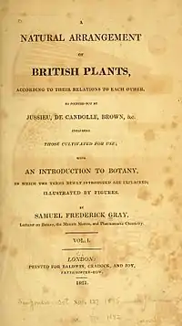 A Natural Arrangement of British Plants (abreviado Nat. Arr. Brit. Pl.)[1] es un libro con ilustraciones y descripciones botánicas que fue escrito por el naturalista, botánico y farmacéutico británico Samuel Frederick Gray. Fue publicado en dos volúmenes en el año 1821 .