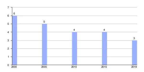 | Gráfica de evolución demográfica de A Senra entre 2000 y 2019 |