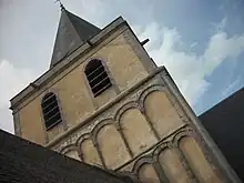 Hasta el siglo XVIII, tenía un cimborrio de 10 o 20 metros de alto. El tercer piso se rehízo en el siglo XVIII y la aguja en el siglo XIX. Los dos niveles inferiores son románicos. El segundo nivel incluye siete arcadas ciegas por lado, ambas adyacentes a la elegante arcada central que alguna vez estuvieron abiertas.[3]
