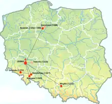 Mogila (desde 1222) Abadía de Henryków (1222-1810 y desde 1947) Abadía de Kamenz (1247-1810) Abadía de Koronow (1256-1833) | |
