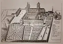 ![]() Plano de la abadía de Saint-Pierre-Sur-Dives en el siglo XVII | ||