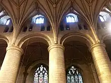 - 1349-1359: finalización de la reconstrucción de las bóvedas de la torre y la nave; las bóvedas de lierne de la nave sustituyeron al techo de madera.