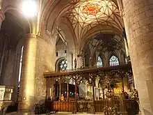 La bóveda de la nave fue construida entre 1320 y 1330 y es de estilo gótico. Quince claves a lo largo de la cumbrera de la bóveda ilustran la vida de Cristo, mientras que las claves subsidiarias representan ángeles tocando instrumentos musicales.[10]