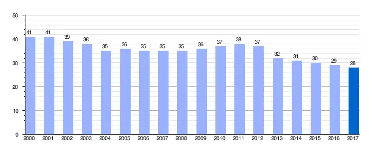 | Gráfica de evolución demográfica de Abano entre 2000 y 2017 |