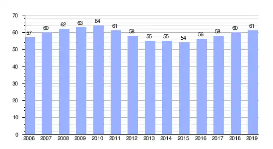 | 2007 | Nicolas Sarkozy | UMP | 65,71 | |