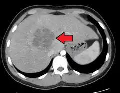 Un absceso hepático es una colección encapsulada llena de pus dentro o asociado al hígado. Las causas más comunes son las infecciones abdominales, tales como una apendicitis, diverticulitis, una enfermedad inflamatoria intestinal, un intestino perforado, infecciones sistémicas como una endocarditis bacteriana o la manipulación del tracto biliar.[1]