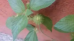 Son hierbas anuales, que alcanzan un tamaño de 20–60 (–90) cm de alto, erectas, generalmente ramificadas, tallos cortamente pilosos y generalmente estipitado-glandulares; plantas monoicas. Hojas ovadas a ampliamente ovadas, 2–8 cm de largo y 1.5–5 cm de ancho, ápice acuminado, base redondeada (raramente subcordada), márgenes serrados, escasamente estrigosas, cortamente pilosas en los nervios especialmente en el envés y escasamente estipitado-glandulares, membranáceas cuando secas, nervadura palmada en la base; pecíolos 0.5–7 cm de largo, con pubescencia como la de los tallos, a menudo con pocas glándulas cafés adaxialmente en el ápice, estípulas subulado-lineares, 1–2.5 mm de largo, deciduas. Inflorescencias espigadas, unisexuales; inflorescencias estaminadas axilares, pedúnculos 0.1–0.6 cm de largo, densa y cortamente pilosos y estipitado-glandulares, porción fértil 0.2–0.8 cm de largo y ca 1 mm de grueso, algo discontinua; inflorescencias pistiladas terminales, pedúnculos 0.2–1 cm de largo, hirsutas y estipitado-glandulares, porción fértil 0.5–1.5 cm de largo y 5–8 mm de ancho en flor, 2–6 cm de largo y 8–15 mm de ancho en fruto, las brácteas muy densamente agrupadas, 2–4 mm de largo y 2–3 mm de ancho en flor, 8–12 mm de largo y 3–4 mm de ancho en fruto, con 3–5 lobos cada uno formado de una base deltoide con un ápice linear 4–7 mm de largo, los lobos ca 3/4 del largo de la bráctea, largamente hirsutos y estipitado-glandulares; flores pistiladas 1 por bráctea, estilos 2–7 mm de largo, no ramificados, anaranjados a rojos; flores alomórficas terminales en las inflorescencias pistiladas (raramente estaminadas), ebracteadas, en pedicelos filiformes 5–15 mm de largo, 1 (2)-carpelares. Cápsulas 1.1–1.3 mm de largo y 1.2–1.5 mm de ancho, hispídulas y estipitado-glandulares o glabras; semillas 1–1.1 mm de largo, lisas; frutos de las flores alomórficas obovoides, 1–1.5 mm de largo y 0.9–1.2 mm de ancho, muricados e hirsutos.[1]