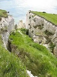 Detrás del acantilado hay kilómetros de túneles ocultos que se crearon durante la Edad Media y más tarde desempeñaron un papel en la defensa de Gran Bretaña durante las guerras napoleónicas. Los túneles más tarde se ampliaron para convertirse en los Túneles Secretos de Guerra bajo el castillo de Dover.