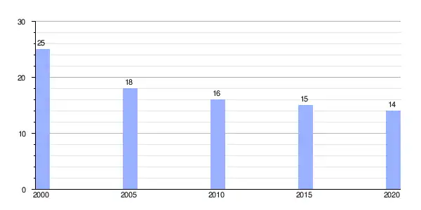 | Gráfica de evolución demográfica de Acevo (aldea) entre 2000 y 2020 |