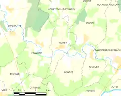 Achey es una población y comuna francesa, situada en la región de Franco Condado, departamento de Alto Saona, en el distrito de Vesoul y cantón de Dampierre-sur-Salon.