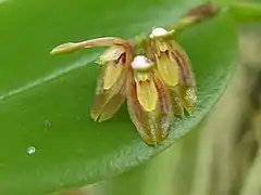 Las plantas son pequeñas y reptantes con un crecimiento variable o subcespitoso con tallos de aproximadamente la misma de longitud que las hojas. Las hojas son gruesas y brillantes, ovadas a lanceoladas, y las inflorescencias con hasta tres flores con dos sépalos laterales con un engrosamiento brillante en la superficie apical.[2]