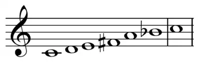 Escala Prometeo en Do, escala de tono entero con un grado alterado matemáticamente ⓘ