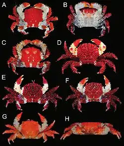 Se caracteriza por su coloración que es roja y blanca, distinguiéndose de A. spinosissima por la disposición de las espinas de su caparazón, quelípedos y pereiópodos además de la estructura de los gonópodos masculinos.[lower-alpha 1] Es similar en apariencia a A. polyacantha, sin embargo difieren en el caparazón.[2]