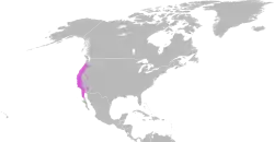 Originalmente iban desde el norte de Baja California, México, al norte de la Puget Sound región de Washington. A partir de 2007 se han vuelto raras o ausentes en el área de Puget Sound. Tienen una distribución dispersa en la mayor parte del noroeste, y existen algunas poblaciones aisladas en el sur de Washington. Son raras en el Valle de Willamette, al norte de Eugene, Oregón aumenta la abundancia, pero al sur de esta ciudad, donde las temperaturas son más altas. Pueden ser localmente común en algunos arroyos, ríos y lagunas en el sur de Oregón. Se informó de su presencia al este de las Montañas de la Cascada, pero estos pueden haber sido sobre la base de los individuos introducidos. Se extienden hasta los 305 m de altitud en Washington, y sobre los 915 m de Oregón.