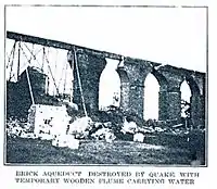 Los terremotos que se iniciaron el 17 de noviembre de 1917 y arruinaron algunas poblaciones alrededor de Amatitlán. El 25 y el 29 de diciembre de ese mismo año, y el 3 y el 24 del siguiente, se repitieron los temblores en la república, pero con mucha mayor fuerza, de modo que destruyeron numerosos edificios públicos y religiosos, así como casas particulares en la ciudad de Guatemala y en la Antigua Guatemala. Entre los edificios destruidos destacaban numerosas estructuras entre las que se encontraba el acueducto, el cual fue acondicionado parcialmente con refuerzos de madera.[7]