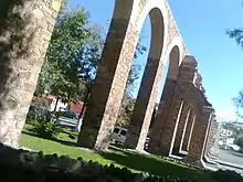 Ubicado en Zacatecas, Zacatecas, México. Se le conoce comúnmente como el "Acueducto Del Cubo". La obra se levantó en cantera rosa, que es muy común en el lugar, hacia finales del siglo XVIII, aunque se realizaron trabajos todavía en los albores del siglo XIX, iniciada la vida del México independiente. En el tramo que se ubica a la altura de lo que fue la Plaza de Toros San Pedro (ahora un lujoso hotel), se encuentran los arcos que subsisten de la obra, reforzados algunos de estos con contrafuertes.