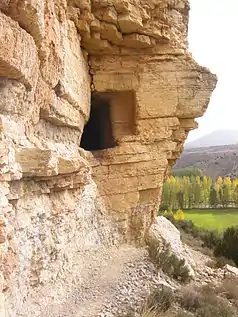 El acueducto romano de Albarracín-Cella, también conocido como de Albarracín-Gea-Cella, se extiende a lo largo de tres términos municipales: Albarracín, Gea de Albarracín y Cella (comarca de la Sierra de Albarracín, Provincia de Teruel, España). Corresponde a una infraestructura hidráulica de época romana y tiene una longitud aproximada de 25 kilómetros,[2] a través de los cuales se abastecía de agua del río Guadalaviar,[3] a un núcleo de población que existió en el actual emplazamiento de Cella y que debió tener una cierta importancia industrial, pese a que desconocemos su nombre romano. Es sin duda una de las obras públicas hidráulicas más importantes del Aragón romano, junto con la presa de Muel y el acueducto de Los Bañales (Uncastillo).[4][5]