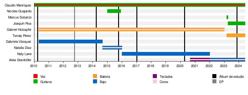 En marzo de 2023, el guitarrista Marcus Sobarzo y el baterista Tomás Pérez debutaron como nuevos miembros.[10]