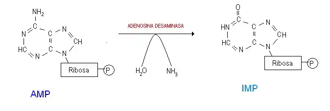 La adenosina desaminasa es una enzima que interviene en el metabolismo de las purinas.[1] Promueve la desaminación de la adenosina, dando como resultado inosina la que puede continuar su proceso metabólico transformándose en hipoxantina.