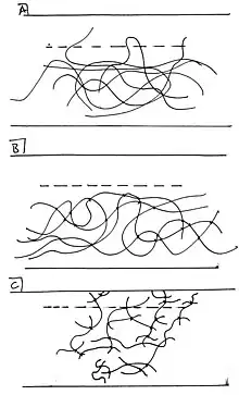 Una vez al otro lado de la interfaz, las colas y los bucles forman enlaces favorables. Si bien estos pueden ser frágiles, son bastante fuertes cuando se forma una gran red de estos enlaces. La capa más externa de cada superficie desempeña un papel crucial en las propiedades adhesivas de dichas interfaces, ya que incluso una pequeña cantidad de interdigitación - tan poco como uno o dos colas de 1,25 angstroms de longitud - puede aumentar los enlaces de van der Waals en un orden de magnitud.[7]