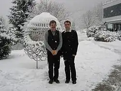 ![]() Constantin (derecha) junto al también matemático Joachim Escher, en Oberwolfach. | ||