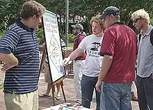 Estudiantes libertarios de la Universidad de Auburn llevando a cabo un evento de Operation: Politically Homeless, utilizando el World’s Smallest Political Quiz una aplicación del Gráfico de Nolan.