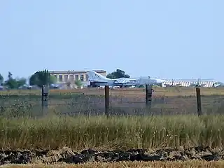 Tiene su origen en una base del 959º Regimiento de Bombarderos parte del 4º Ejército del Aire. Sigue teniendo uso militar (base de aviones Su-24 hasta 2009). Es usado por el Instituto Superior de Aviación Militar de Yeisk) desde 2010. Se ha planeado para 2011 la renovación y ampliación de sus pistas de aterrizaje hasta los 3 500x60 en relación con la construcción del área de juego Azov-City, por lo que el transporte de pasajeros se ha detenido.