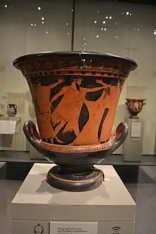 Los poetas trágicos han modificado ampliamente la historia de la muerte de Agamenón. Esquilo hacía que Clitemnestra sola matase a Agamenón: le arrojaba una red mientras él tomaba un baño y lo mataba después mediante tres golpes.[54] Sus motivos eran en parte el sacrificio que había realizado Agamenón de la hija de ambos, Ifigenia, y en parte la vida adúltera de la reina con Egisto. Según cuenta Tzetzes, Egisto mató a Agamenón con la ayuda de Clitemnestra.[55] Eurípides cuenta que Clitemnestra envolvió con una red a Agamenón para matarlo,[56] y tanto Sófocles como él presentan el sacrificio de Ifigenia como la razón por la que lo mató.[57] Tras la muerte de Agamenón y Casandra, sobre su tumba fueron muertos también sus hijos por Egisto.[48] Según cuenta Píndaro, la occisión de Agamenón tuvo lugar en Amiclas, en Laconia,[58] y Pausanias relata que los habitantes de este lugar se disputaban con los de Micenas la posesión de la tumba de Casandra.[59]