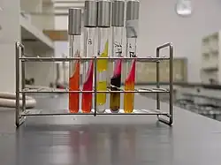 Diferentes cultivos de microorganismos en agar TSI:(de izquierda a derecha) E. coli, Shigella flexneri, Salmonella Typhimurium, P. aeruginosa