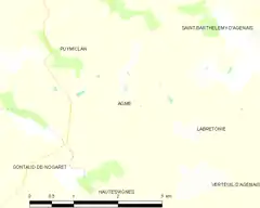 Agmé es una población y comuna francesa, en la región de Aquitania, departamento de Lot y Garona, en el distrito de Marmande y cantón de Marmande-Est.