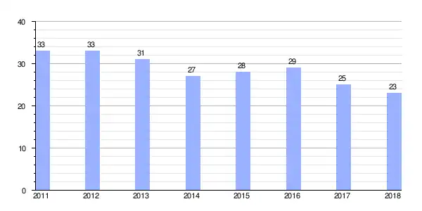 | Gráfica de evolución demográfica de Agra entre 2011 y 2018 |
