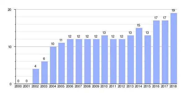 | Gráfica de evolución demográfica de Agra de Vales[2] entre 2000 y 2018 |