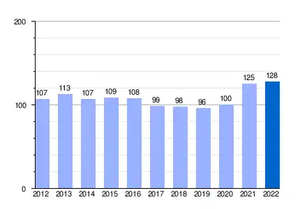 | Gráfica de evolución demográfica de Aguas Blancas entre 2012 y 2022 |