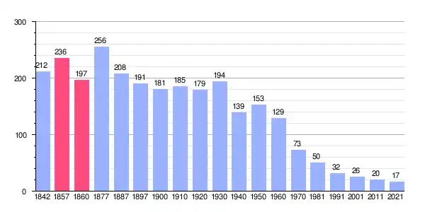 | Gráfica de evolución demográfica de Aguatón[5][6] entre 1842 y 2021 |