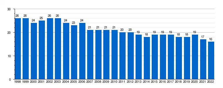 | Gráfica de evolución demográfica de Aguatón[7] entre 1998 y 2022 |