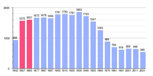 | Gráfica de evolución demográfica de Aguaviva[5][6] entre 1842 y 2021 |