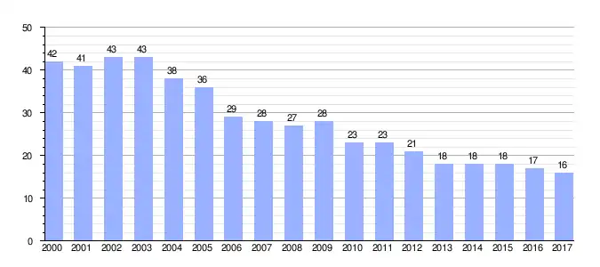 Población de derecho (2000-2017) según los censos de población del INE a 1 de enero de cada año.[9] |
