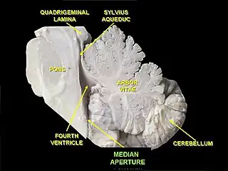 Pone en comunicación el IV ventrículo con un amplio espacio subaracnoideo, denominado cisterna magna o cisterna cerebelomedular, lo cual permite el flujo del líquido cefalorraquídeo desde el cuarto ventrículo hacia la médula espinal.[2]