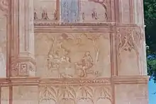- Fachada del Santuario Nuestra Señora de Gracia de Caudete (1907)Pintura al fresco de inspiración neogótica.[2]