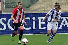 Tras tres temporadas pasó al Athletic Club,[15] debutando el 13 de septiembre de 2015 en la segunda jornada de liga con victoria por 3-2 ante el Valencia.[16] Tuvo buenas actuaciones, destacando su papel ante el vigente campeón y favorito, el Barcelona.[17] Su primer gol llegó el 1 de noviembre en la goleada por 5-1 sobre Fundación Albacete, partido en el que además dio la asistencia del primer tanto.[18] En su primera temporada jugó 26 partidos y marcó 3 goles,[19] y ganó la liga.[20][21] Ese año fue elegida en el Once de Oro de Fútbol Draft.[22] En la Copa de la Reina cayeron en cuartos de final ante el Levante.