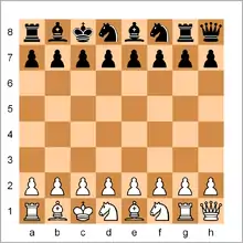 - Ubique los peones blancos y negros en sus casilleros habituales, y ubique las piezas negras exactamente en espejo respecto a las blancas (así la Negras tendrán en a8 exactamente el mismo tipo de pieza que las Blancas tienen en a1).