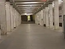 Ideada por Yuliya Kolesnikova, Petukhova y Fokina, se construyó siguiendo el modelo relativamente nuevo de los pilares con tres pasillos, que se convirtió en el diseño más utilizado en los años 1960 por su bajo coste de construcción. La estación tiene pilares de mármol blanco acentuados con una línea de mármol negro muy cerca de la parte superior. Las paredes, que originalmente estaban recubiertas de azulejos blancos con cuatro líneas horizontales de azulejos azules, fueron cubiertas de nuevo en 2003 con placas de aluminio de colores similares para una apariencia más moderna y limpia.[1]