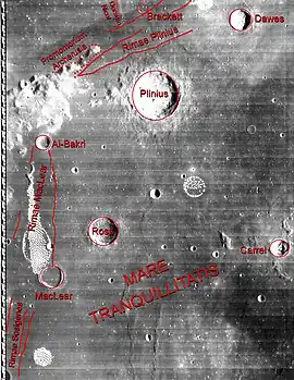 - Menzel, D. H.; Minnaert, M.; Levin, B.; Dollfus, A.; Bell, B. (1971). «Report on Lunar Nomenclature by The Working Group of Commission 17 of the IAU». Space Science Reviews (en inglés) 12: 136.