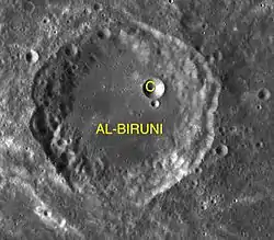 Por convención estos elementos son identificados en los mapas lunares poniendo la letra en el lado del punto medio del cráter que está más cercano a Al-Biruni.