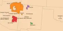 - El distrito administrativo de la reserva india de San Carlos se designó entonces como 60 * 130 millas, lo que corresponde a aproximadamente 12.550 km² y, por lo tanto, rápidamente al tamaño de Baden (estado).