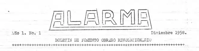 Alarma: Boletín de Fomento Obrero Revolucionario, Núcleo M. Publicación de carácter político comunista, órgano de Fomento Obrero Revolucionario, grupo que había sido fundado en 1958 por Grandizo Munis, Benjamín Péret y Jaime Fernández, entre otros.